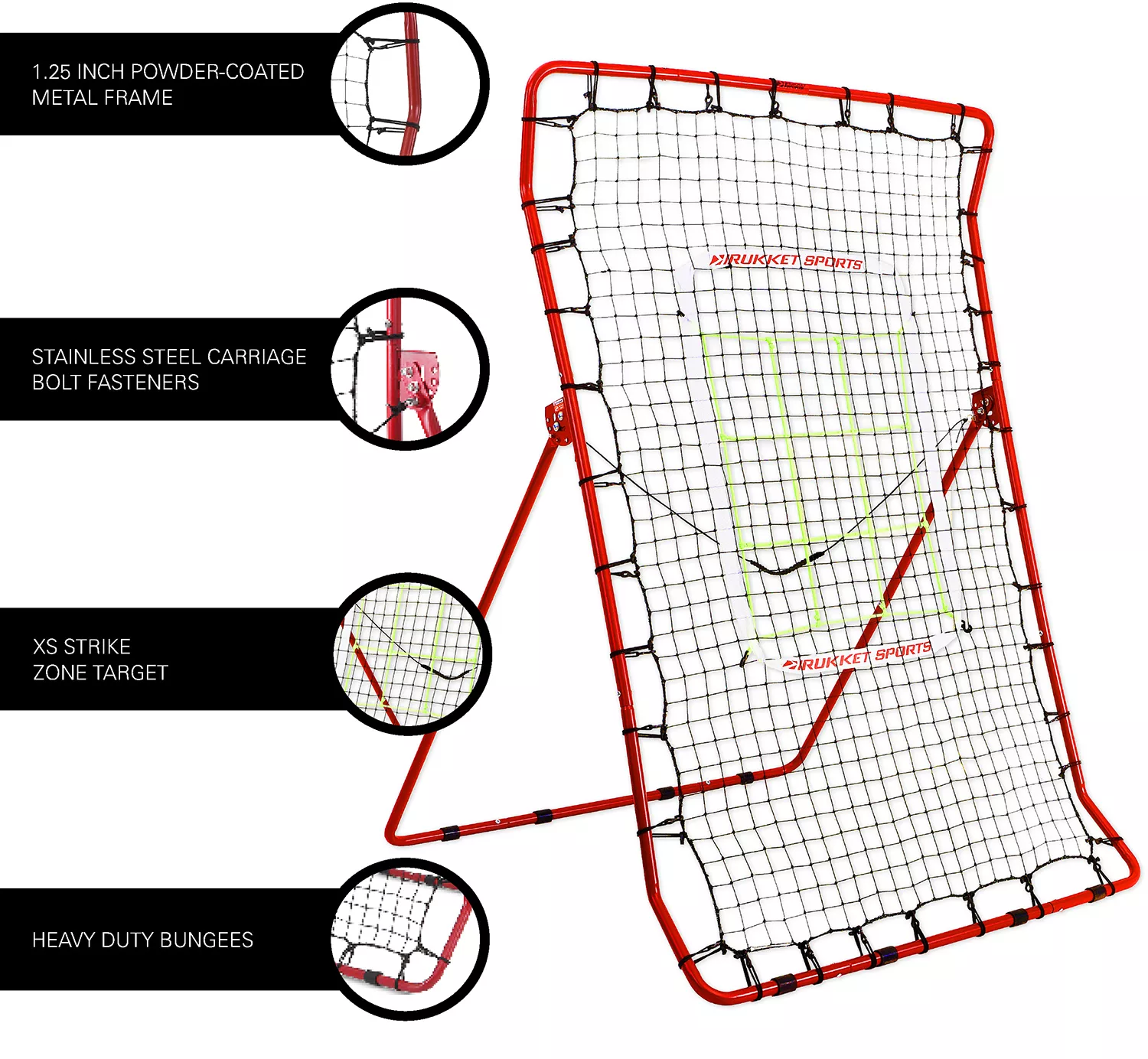 - More Challenging Than The Original Rukket Rebounder: Designed as a direct upgrade to the Original Rukket Rebounder, with angled top and bottom edges to enforce a perfect pitch at the center target. Protect your fingers with patented plunger bolt technology when adjusting the rebounder